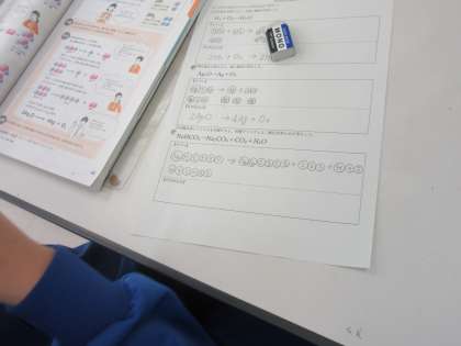 化学変化を化学反応式で表す練習をしました。