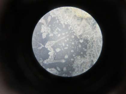 実験で得られた水溶液を蒸発させると、食塩の結晶が見えました。