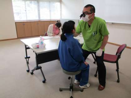 午後に歯科検診がありました。学校歯科医の先生に、むし歯はないか、歯肉の状態はどうかなど、歯と口の健康について診ていただきました。後日、全校生徒に結果のお知らせを配付します。「受診のおすすめ」にチェックがあった場合は、早めの受診をお勧めします。