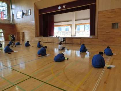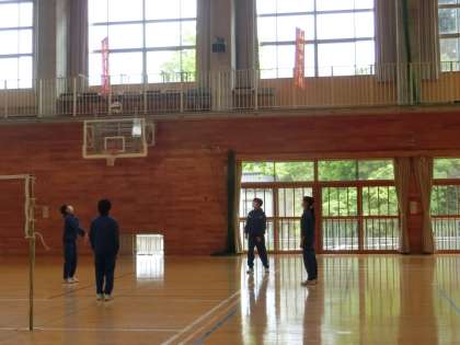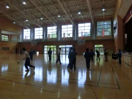 体力測定の記録を写した後、グループになってバレーボールをしました。