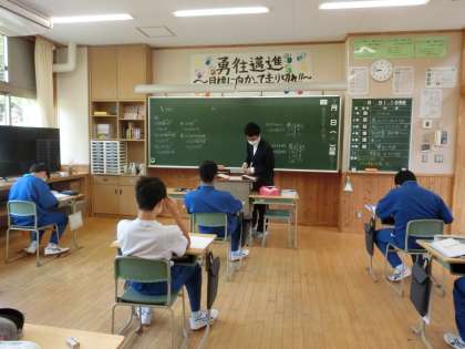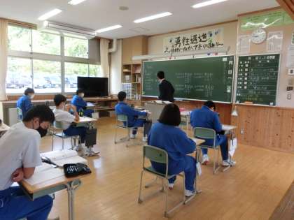 問題を解き、先生の解説を聞いています。数学が得意な生徒はどんどんと先に進めていました。