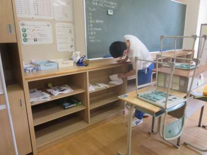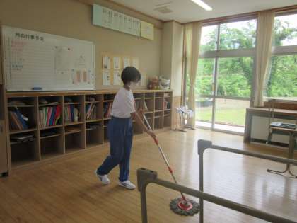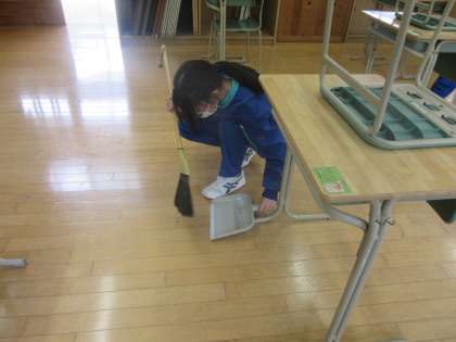 生徒全員が時間内に担当の場所の清掃を終えるため、黙々と取り組んでいます。本日も校舎をきれいにしました。