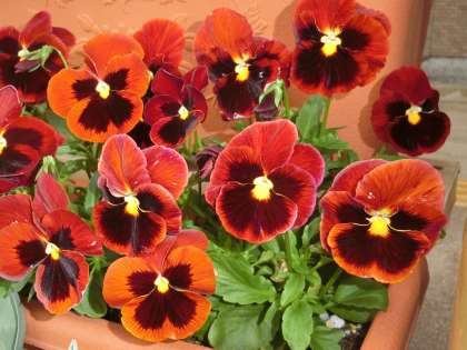 パンジーとビオラが可憐に咲いています。ビロードの輝きです!