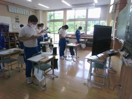全員で音読したり、文法事項を確認したりして、学習が進められています。