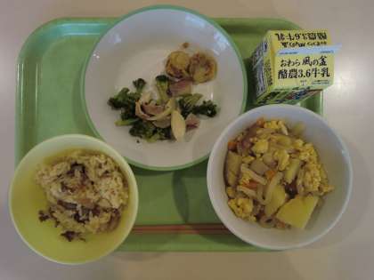 本校は清掃と給食準備を同時に行っています。各学年教室や特別教室、体育館等を清掃する班(複数班)、ランチルームで全校生徒の給食を準備する班とに分かれ、本日も手際よく活動することができました。