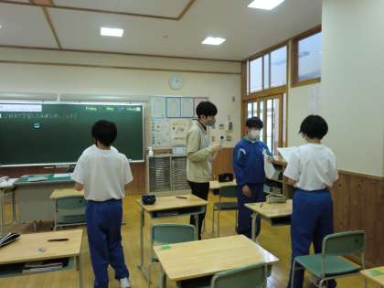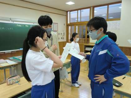 入学してからこれまでに学習した表現をフルに活用して、相手とコミュニケーションをしました。ミスを恐れず、意欲的に活動しました。学習する上でとても大切なことです。