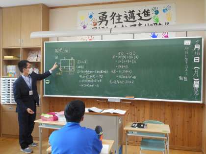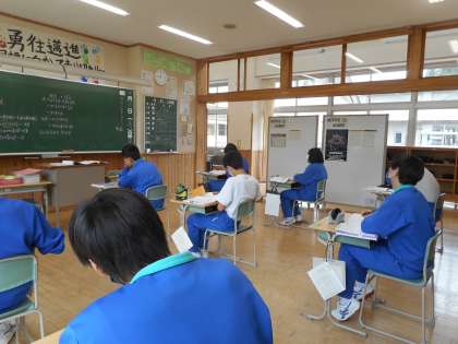 1週間のスタートは、数学の授業です。先週金曜日に学習した「証明」の応用問題です。ノートに図形を丁寧に書き写してから、解き始めます。