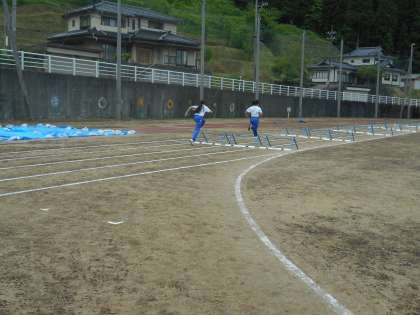 4限の授業は、グランドでの「ハードル」です。歩幅を考えて、ジャンプすることが大切になります。