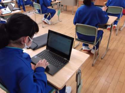 総合の学習では、富山県の偉人について、調べています。偉人の写真やスライドの背景等を上手に挿入しながら、一人一人スライドを作成しています。