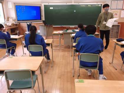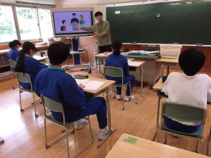 英語の授業では、人やものの紹介について学習しています。前時までの学習を生かし、意欲的に発言しています。