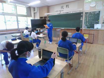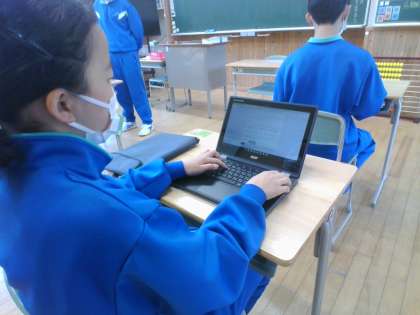 1年生の朝学活の様子です。クロームブックを使用して、学習の記録をつけたり、選択献立のアンケートに答えたりしました。