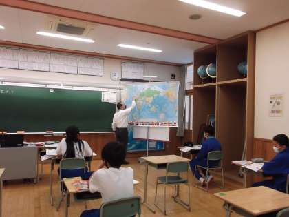 仏教、キリスト教、イスラム教はどのようにおこり、広まったのかについて学習しています。キリスト教はカトリック、プロテスタント、正教に分かれます。その違いについての説明で映画の1シーンにふれ、楽しそうに聞いていました。