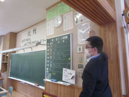 今日、山田小学校で避難訓練がありました。1年A組では、この機会に中学校からの避難経路の確認を行いました。いざというときのため、真剣に聞いています。