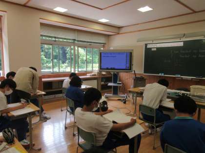 3年生の英語の授業は、パフォーマンステストをしました。本校は1学期中間評価を行っていませんが、定期的に小テストを行い、学習内容の定着度を確認しています。
