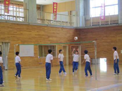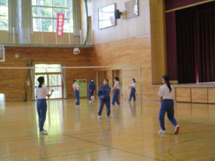 今日は、2・3年生の合同体育です。バレーボールに取り組んでいます。最初はグループに分かれてトス練習をしています。いつも以上に、盛り上がっています。