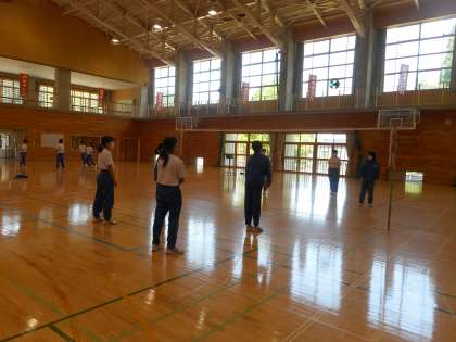 本日の授業は、2年・3年合同での「バレーボール」です。男女に分かれサーブ、トス、スパイクを練習しました。かけ声が飛び交う活気のある練習風景でした。