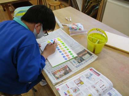 続いて、水彩です。色の三原色を使って、たくさんの色を作っています。
