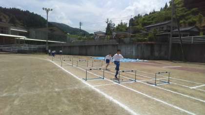 1年生は保健体育の授業で、ハードル走を行っています。跳びやすい歩幅を確認しながら、練習を重ねています。