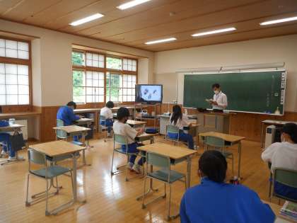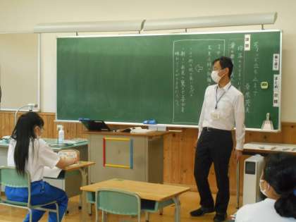 本日の学習課題は、題材「ちょっと立ち止まって」を段落ごとに要旨をまとめることです。授業は、教科担任による朗読から始まりました。