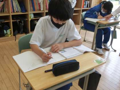 計算のまとめ学習をしています。理解を深めようと、「先生、アドバイスをお願いします。」と生徒たちが自分の考えを教師に伝えていました。