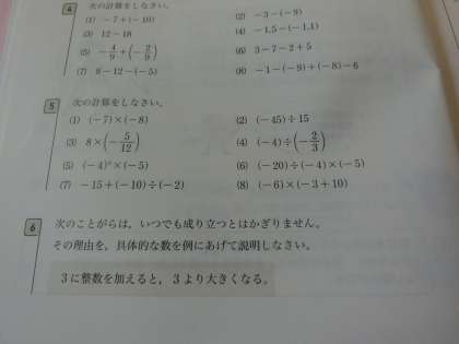 【5月27日(金)】1年生 数学 <正負の計算>