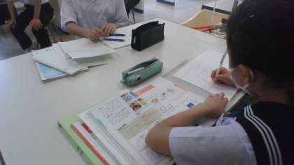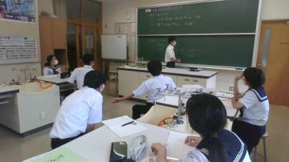 1年生の理科では、金属と非金属の性質の違いについて学習しています。先生からの質問に、積極的に答えています。
