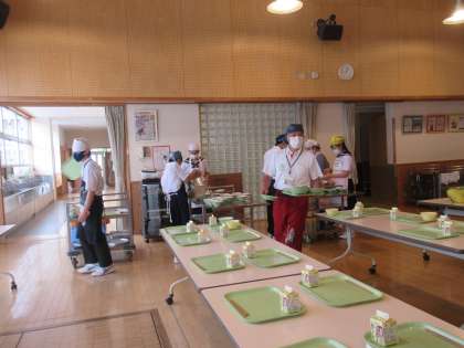 当番の生徒たちが協力して素早く配膳していて、とても頼もしいです。