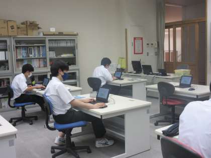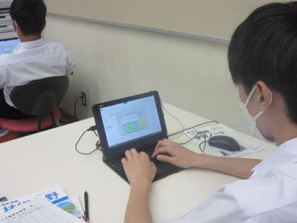 3年生では「情報」を学習しています。今日はコンピュータ室で「タッチタイピングをマスターしよう。」の課題のもと、それぞれがコンピュータ画面に向かいました。全員が真剣に取り組んでいました。