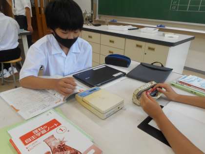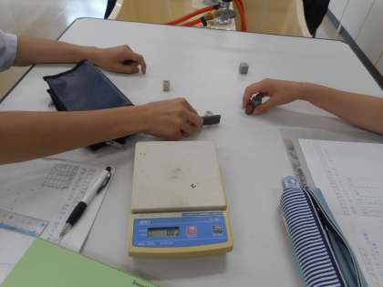 1限目は、理科です。学習課題は「金属を見分けるには、どうしたらよいか」てす。質量、磁石に近づける、見た目の3つの方法で、5種類の金属を見分けます。