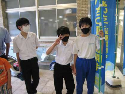 ボランティアの児童生徒も加わって、元気にあいさつをしていました。