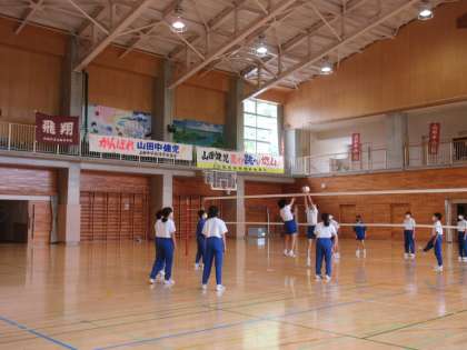 1時間目は体育館でバレーボールです。チームで練習した後、ゲームを行いました。ナイスプレーには両チームから拍手も。