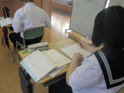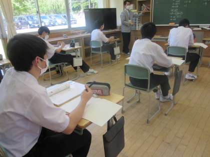 生徒達は、根号(ルート)を含んだいろいろな計算問題を今まで学んだ公式を思い出しながら取り組んでいました。