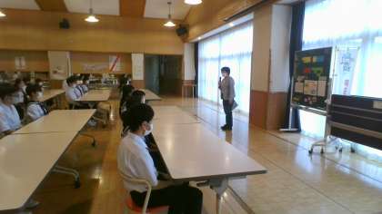 17日(金)から行われる富山市総合選手権大会に向けて、激励会を行いました。各部の部長が大会に向けての熱い思いを発表しました。その後、大会中の感染防止対策の話、校長先生からの激励の言葉を聞き、大会に向けての意欲を高めていました。1つ1つのプレーを諦めずに、一生懸命に取り組む姿を期待しています。