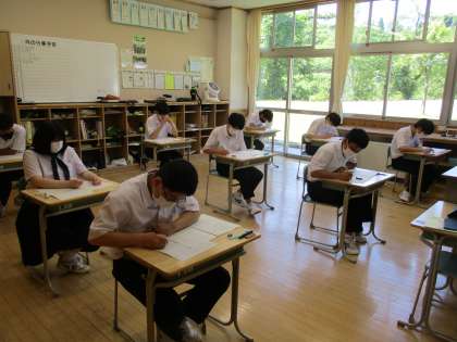 今日から3日間、期末評価が行われます。どの学年も、今までの勉強の成果を発揮しようと真剣に取り組んでいます。