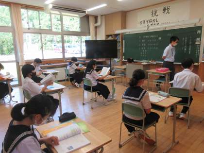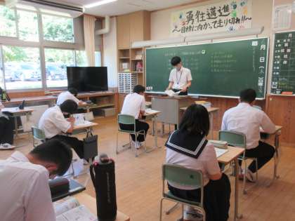 今日は期末評価2日目でした。朝学活のあとには、テスト対策の勉強に取り組みました。どの教室も、各自が集中して最後の確認を行っていました。