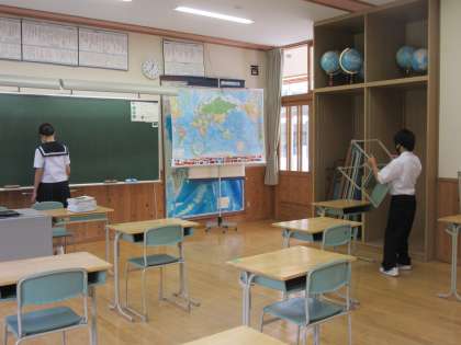 期末評価の日でも、清掃に一生懸命取り組んでいます。