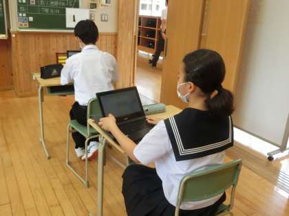 一人一台端末を使った健康観察です。新しい日常が定着してきました。今では、当たり前の光景です。