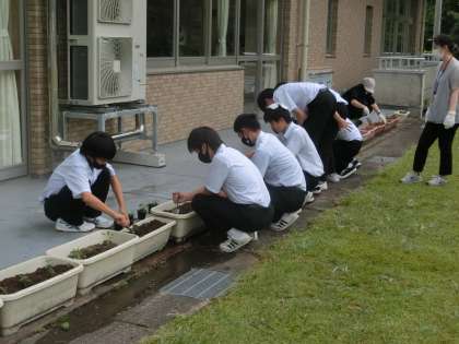 サルビア、マリーゴールド等の花の苗を植樹しました。ボランティアの生徒の皆さんありがとうございました。素敵な生徒たちです。さりげない優しさにぐっときます。