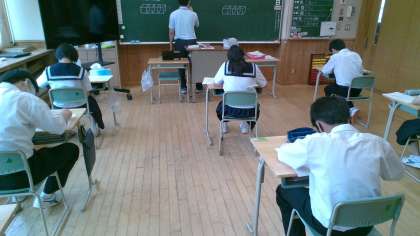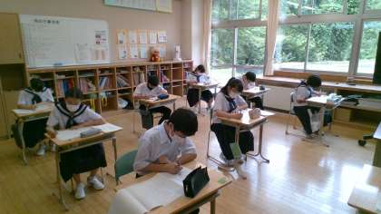 確認テストに真剣な表情で粘り強く取り組んでいました。