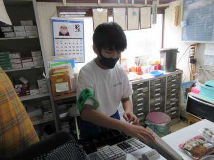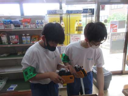 吉田商店では、レジや品だしをしました。素早く仕事をこなす姿が見られました。