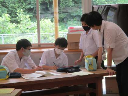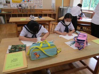 美術の授業では、「私の大切なもの」の課題に、各々が大切にしている部活動のユニフォームやラケット、内履き等のデッサンに取り組んでいます。立体感や質感を意識し、細かいところまで描いていきます。水彩による着色が楽しみです。