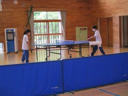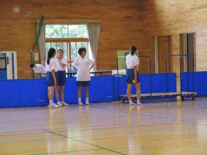 ほとんどの部活動では、3年生が引退し、1・2年生による新チームで活動しています。しかも今週は2年生が「社会に学ぶ『14歳の挑戦』」中のため、1年生のみの活動です。体育館では、バレーボール部と卓球部が、自分たちでネットや台の準備をして、準備運動を始めていました。中学校に入学して3か月、素晴らしい成長です。