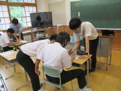 今日も昼休みに山田中学力向上アカデミー(英語)を行いました。生徒は一人一人自分に必要なプリントを選び、学習していました。