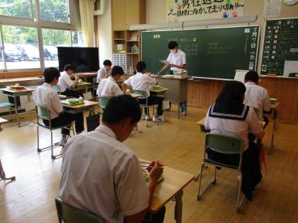 今週は2年生が「社会に学ぶ『14歳の挑戦』」中なので、給食当番は1,3年生しかいませんが、なるべく配りきれるように毎回工夫していました。ありがとう。