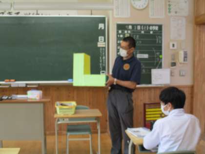 1年生は技術で、製図について学習しました。実際に立体の模型を見ながら、製図の書き方を確認していました。