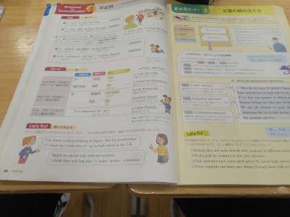 本日のしりとり英単語は“Thursday”から続く“Yes”を紹介しています。本日の授業は不定詞(to+動詞)について学習します。3年生は、1,2限確認テストでしたが、疲れをみせずに6限の授業に集中しています。