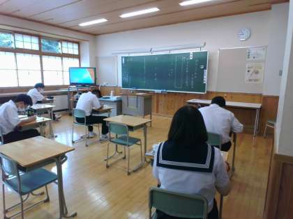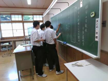 単元「俳句の可能性」に取り組んでいます。俳句の一語一語に着目し、連想する言葉を黒板に書き出しています。