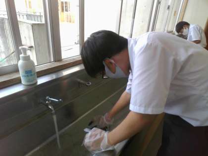 保健美化委員会は、放課後に手洗い場の掃除を行いました。排水溝の汚れも落とし、きれいにしました。