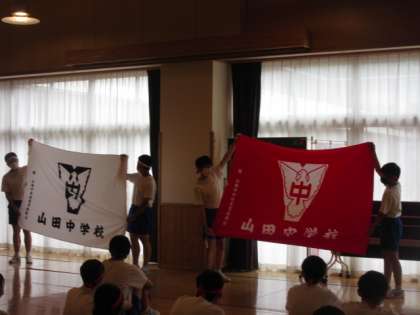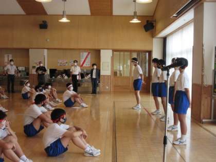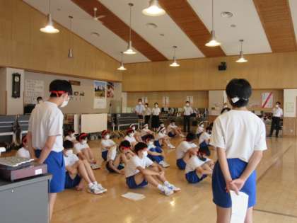 9月10日に予定されている保小中合同運動会の結団式がランチルームで行われました。