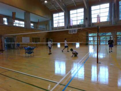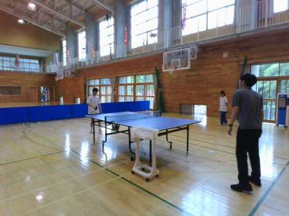 卓球部、バレーボール部の部員が、元気よく活動していました。